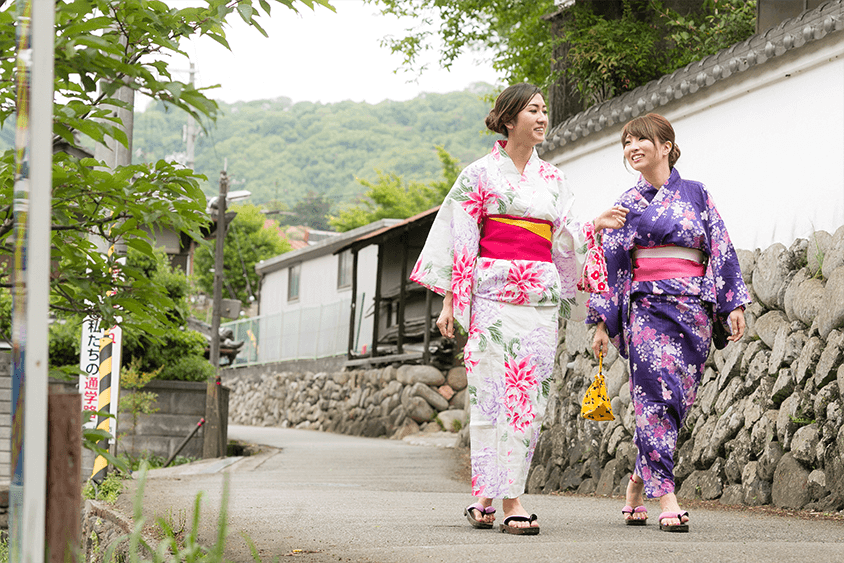 홈페이지를 통해 예약하신 숙박 고객께 컬러 유카타 대여 서비스.