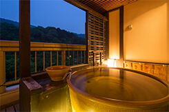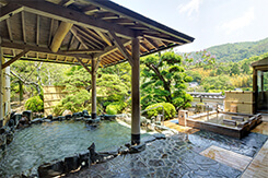 오사카 제일의 온천 노천탕을 비롯하여 일식, 기모노, 다다미방 등
