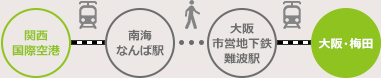 Guests arriving at Kansai International Airport, who go shopping or visit the Umeda Sky Building in Osaka, should use the JR line.