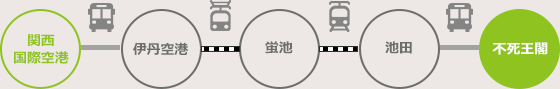 Change to the Osaka Monorail at Itami Airport, get off at Hotarugaike Station, and then take the Hankyū Railway to Ikeda Station. Take the hotel shuttle bus from Ikeda Station at 10:40 a.m. Guests can leave their luggage at the hotel and take the 11 a.m. shuttle bus to Ikeda Station before heading to sightseeing areas.