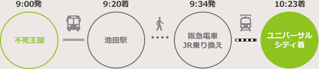 Guests arriving at Kansai International Airport should head to the Osaka Namba/Shinsaibashi shopping areas using the Nankai Electric Railway train, “Rapi:t.” Guests wishing to check in at the hotel by about 6 p.m. can enjoy shopping until around 4:30 p.m. Guests can use the hotel shuttle bus service from Ikeda Station, departing at 5:40 p.m.