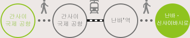 간사이 공항에 도착하신 고객은 난카이전철 '라피트'를 타고 쇼핑의 거리 오사카 난바ㆍ신사이바시로. 료칸에 18시 체크인을 원하시는 경우 약 16시 30분까지 쇼핑을 즐기실 수 있습니다.