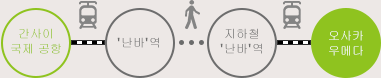 간사이 공항에 도착하신 후 쇼핑을 하시거나 우메다 스카이 빌딩으로 가실 고객은 JR을 이용하십시오.