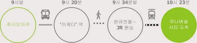 9시발 셔틀버스 → 9시 20분 이케다 역 도착