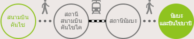 ลูกค้าที่ถึงสนามบินคันไซ ให้นั่งรถไฟนันไคเด็นเทสึ "รถไฟด่วน" ไปยังย่านช็อปปิ้งโอซาก้านัมบะและชินไซบาชิ กรณีที่ประสงค์จะเช็คอินที่โรงแรมเวลา 18:00 น. สามารถเพลิดเพลินกับการช็อปปิ้ง