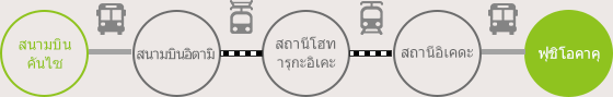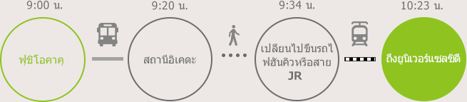 รถบัสรับส่ง ออกเวลา 9:00 น. → ถึงสถานีอิเคดะ เวลา 9:20 น.
