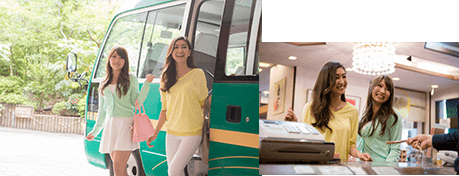 จากสถานีอิเคดะ สามารถใช้บริการรถบัสรับส่งของทางโรงแรมได้ (รถออกเวลา 17:40 น.)
